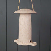 This unique Seed Bird Feeder is made with Chaff. The Earthy Sustainable line processes agricultural waste blending it with resin. A lot of time energy and water goes into growing crops yet most of the plant goes unwanted and would normally be burnt releasing harmful CO2 into the environment. Instead the waste material is processed to create Earthy sustainable products. None of the ingredients are grown specifically for Earthy. The unwanted parts of commercially-farmed crops are used to make our feeders. These products are frost proof and suitable for outdoor and indoor use. Lifespan 2-3 years. Dimensions are 6.1"W x 5.7"D x 8.7"H.