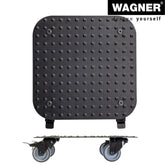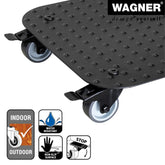 Wagner Square Black Aluminum Plant Caddy in a fresh contemporary design. Made of solid rust-free diamond plated aluminum. Equipped with soft equipment casters providing protection on all surfaces won't scratch or mar floors. Two casters are fitted with a strong brake for easy and safe positioning. Surface design prevents pots from slipping. Suited for use in protected outdoor areas do not permanently expose to humidity. Made in Germany. The Wagner company located in southern Germany near the Black Forest has earned a reputation for exceptional quality. With over 40 years' experience in design and manufacturing their products are rigorously tested for safety and durability. 331 lbs. capacity 11.4"W x 11.4"D x 2.75"H 2.3 lbs.
