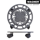 Wagner Round Plant Caddy in timeless cast iron in a slate gray shade. Twin wheel smooth-rolling casters glide easily over carpets and floors without marring or tipping. Casters are equipped with brakes for safe positioning. Water resistant finish so it can be used indoors or out. The Wagner company located in southern Germany near the Black Forest has earned a reputation for exceptional quality. With over 40 years experience in design and manufacturing their products are rigorously tested for quality safety and durability. 110 lbs. capacity 11.4"D x 2.25"H 3.8 lbs.