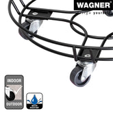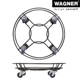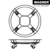 Wagner Round Black Steel Plant Caddy makes moving plants a breeze. Constructed of solid powder coated steel. Durable caster wheels makes plants easy to move. Works best with soft floors such as carpet or cork. Caddy has a double ring around the perimeter 1.75"H to prevent shifting and slipping of your pot. Used indoors and out. The Wagner company located in southern Germany near the Black Forest has earned a reputation for exceptional quality. With over 40 years experience in design and manufacturing their products are rigorously tested for quality safety and durability. 220 lbs. capacity 15"D x 3.75"H 2.2 lbs.