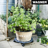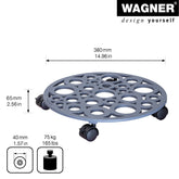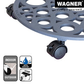 Wagner Round Cast Iron Plant Caddy has classic beauty while circle design gives it a contemporary twist. Twin wheel smooth-rolling casters glide easily over carpets and floors without marring or tipping. Casters are equipped with brakes for safe positioning. Water resistant 165 lb capacity 15" diameter. Dark grey color to go with any decor indoors or out. The Wagner company located in southern Germany near the Black Forest has earned a reputation for exceptional quality. With over 40 years experience in design and manufacturing their products are rigorously tested for quality safety and durability.