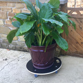 This industrial size Wagner plant caddy makes it easy to move heavy loads. Caddy is made from sustainably-harvested poplar with a sure-grip non slip surface keeping planters in place when they're on the move. It is also water-repellent so it can be used indoors or out! The flexible ultra-soft polypropylene swivel casters provide smooth movement on any floor surface. Two casters are equipped with brakes for safe positioning. Features a practical ergonomic handle for holding while positioning plant and as a convenience for hanging when not in use. 20 year warranty. The Wagner company located in southern Germany near the Black Forest has earned a reputation for exceptional quality. With over 40 years experience in design and manufacturing their products are rigorously tested for safety and durability. 661lbs. capacity 22.8"D x 5.7"H 10.65lbs