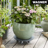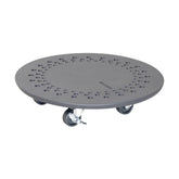 Wagner Round Plant Caddy in stone with a mat gray finish. Twin wheel smooth-rolling casters glide easily over carpets and floors without marring or tipping. Casters are equipped with brakes for safe positioning. Water resistant finish so it can be used indoors or out. The Wagner company located in southern Germany near the Black Forest has earned a reputation for exceptional quality. With over 40 years experience in design and manufacturing their products are rigorously tested for quality safety and durability. 220 lbs. capacity 13.4"D x 3"H 7.8 lbs