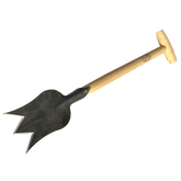 Works like a trowel and breaks up soil like a fork! Our DeWit Tulip Spade is a specialized take on the standard trowel built with sharpened edges and three points. Great for breaking up clay soil you can trust this trowel to break up the hardest parts of your garden. Easily break up roots with the sharp points and utilize the curved blade to quickly scoop soil. Crafted from hardened boron steel that has been heat-treated for strength this Trowel is the perfect long-lasting addition to your garden tools! Head: 6.7"L x 4.5"W Total: 23"L 1.4lbs