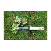 Made from one piece of hardened boron stamped steel. These tools are great for getting into small hard-to-reach places. Simple rocker arm design adds leverage to easily pop out stubborn weeds. Great for dandelions and wild onions. Head: 1.8"W x 3.1"D Total: 11.4"L .3 lbs.