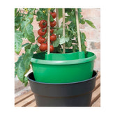 The all-in-one watering and crop support solution! Use on grow bags pots or directly in soil The inner circle creates the planting area while the outer ring features six watering spikes which penetrate below the soil surface delivering water directly to the plant's roots. Ensures water and nutrients are delivered at reduced rate so the plant is better able to absorb preventing waste which is common with conventional watering. The unique support system has 3 anchor slots around the edge which allows up to 4 canes to be joined at the peak. 11.5"D x 6"H 1.8lbs 5.5" inner pot opening